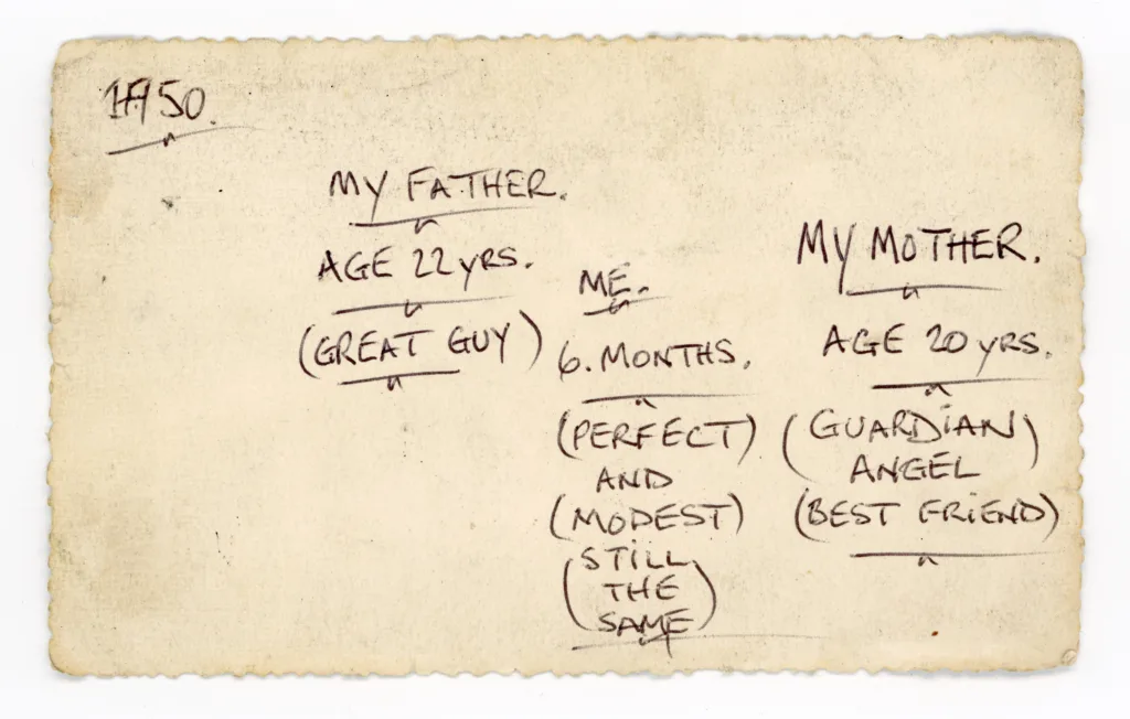 Handwritten notes by Eddie Bartaby found on reverse of The Bartaby Family, Westgate Hill, 1950.